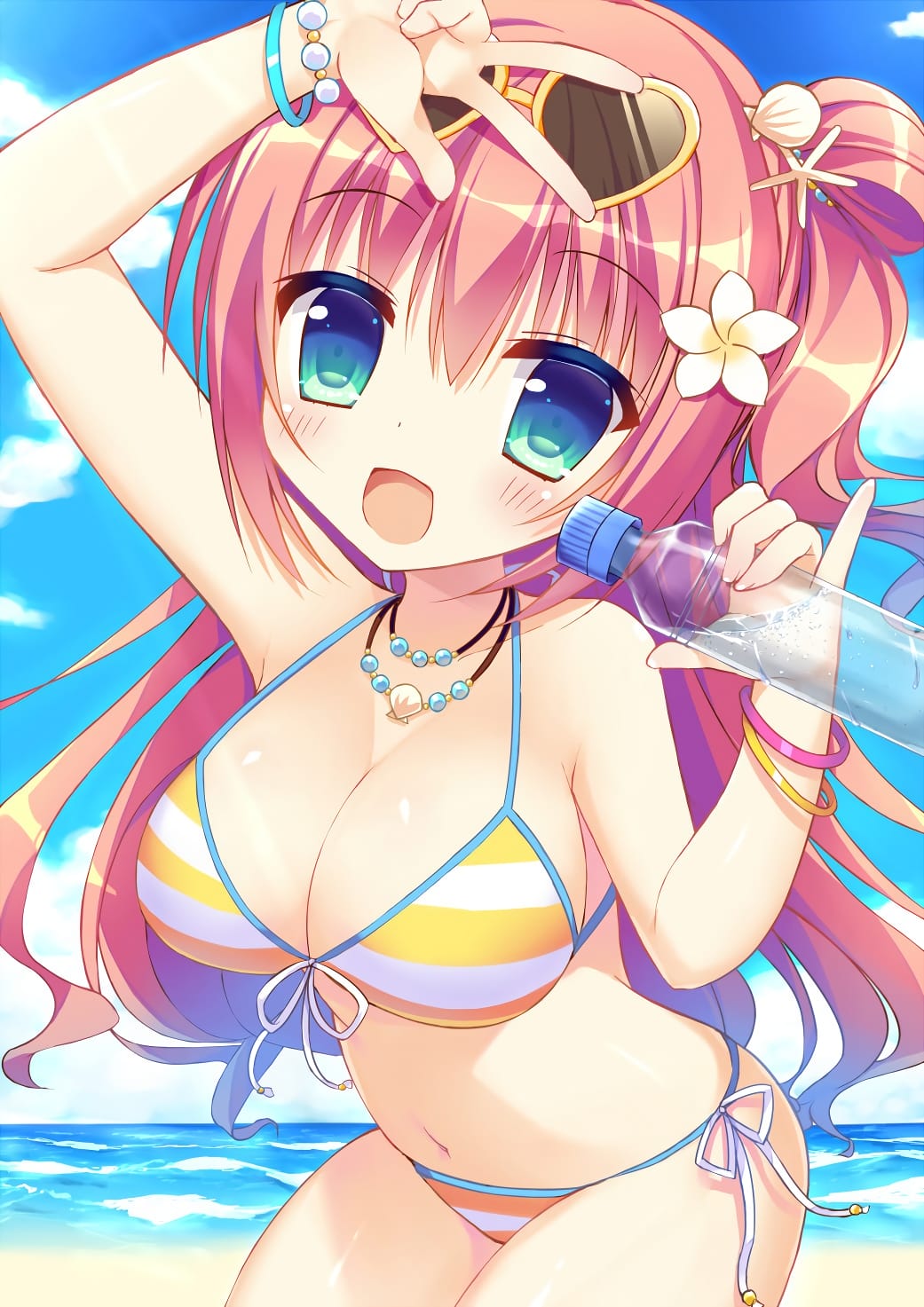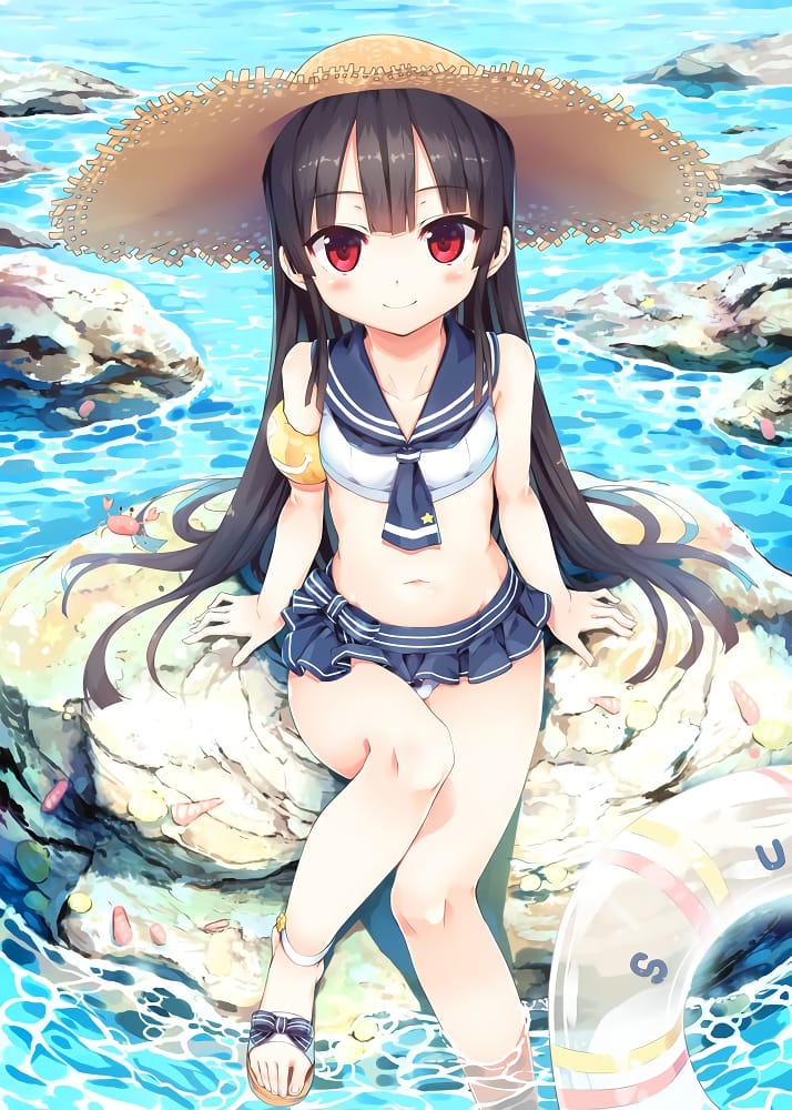 海でビキニを着た巨乳なロリ娘。