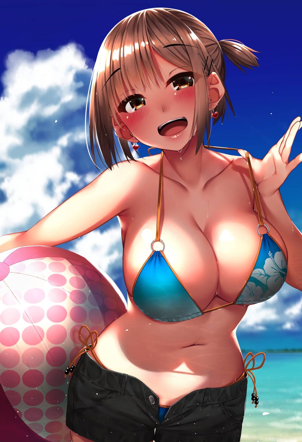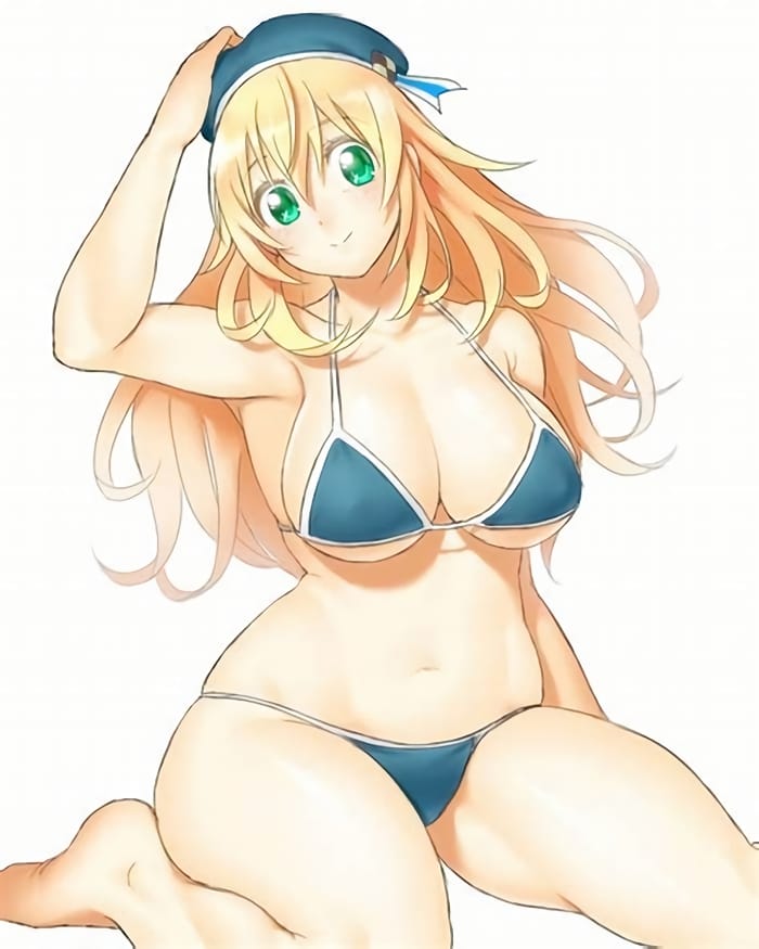 ビキニ姿でプールの縁におっぱいを乗っけている小悪魔系美女