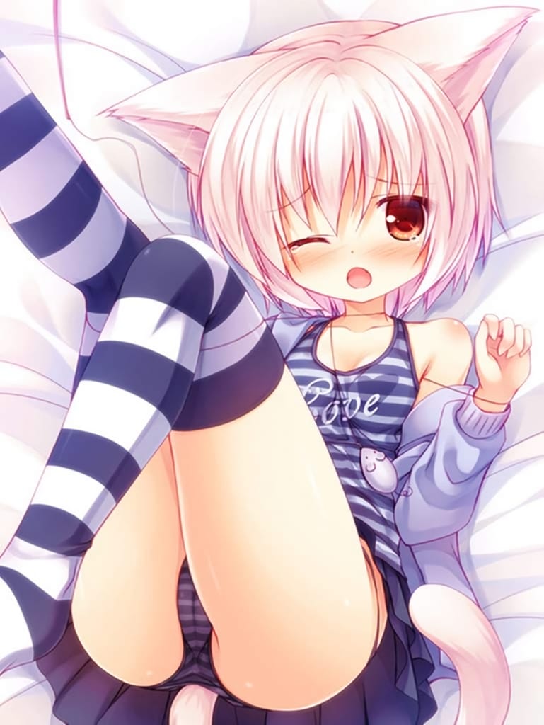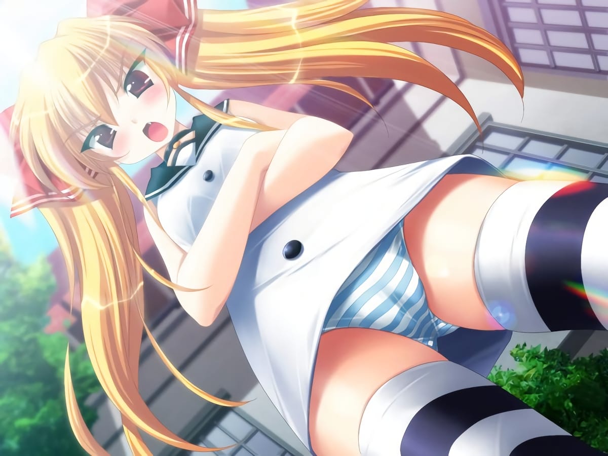 二次元の縞々ニーソを履いた美少女達のエロ画像です。