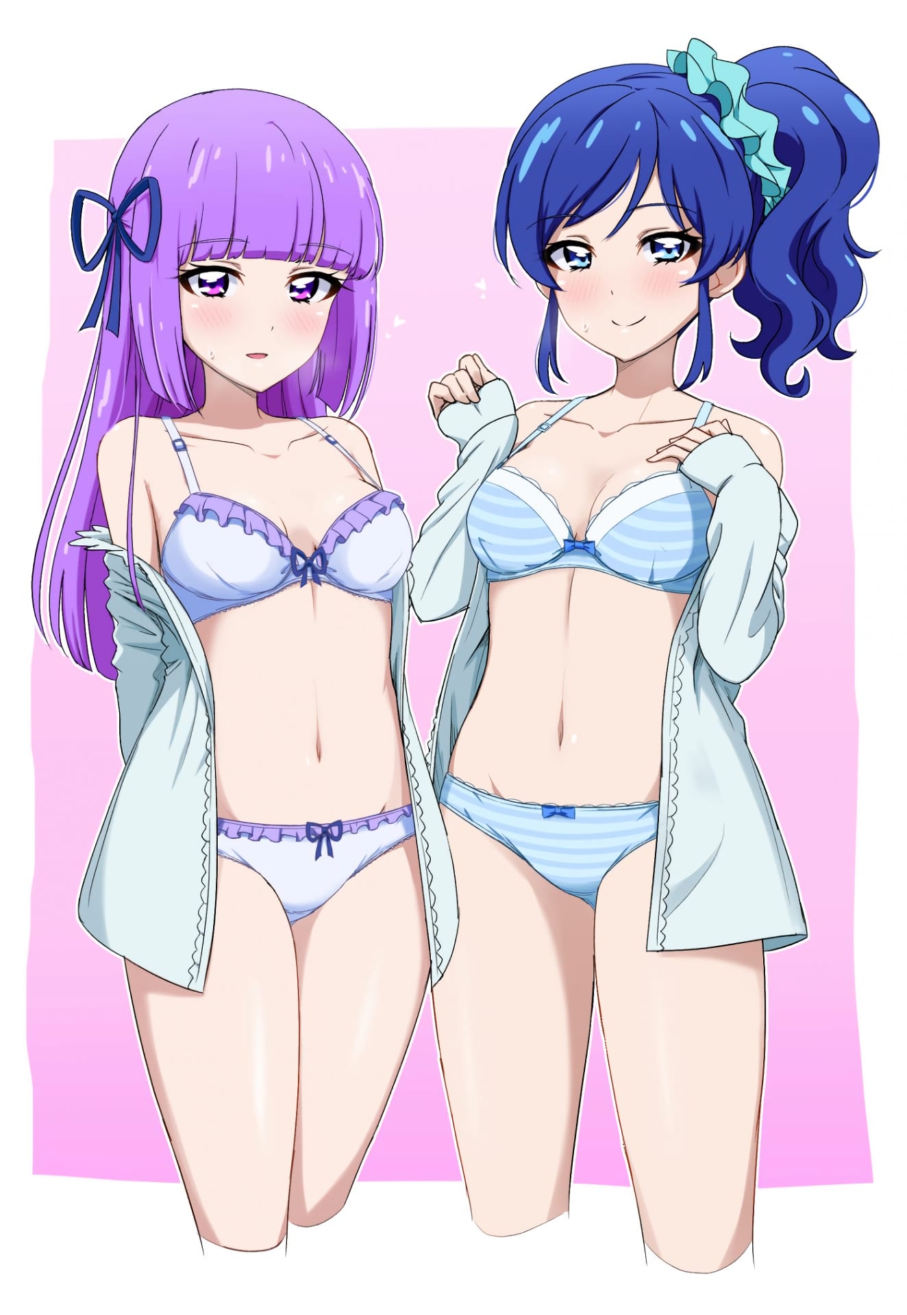 シャツや下着、スカートなどを脱ぎかけている美少女達がセクシーですね。