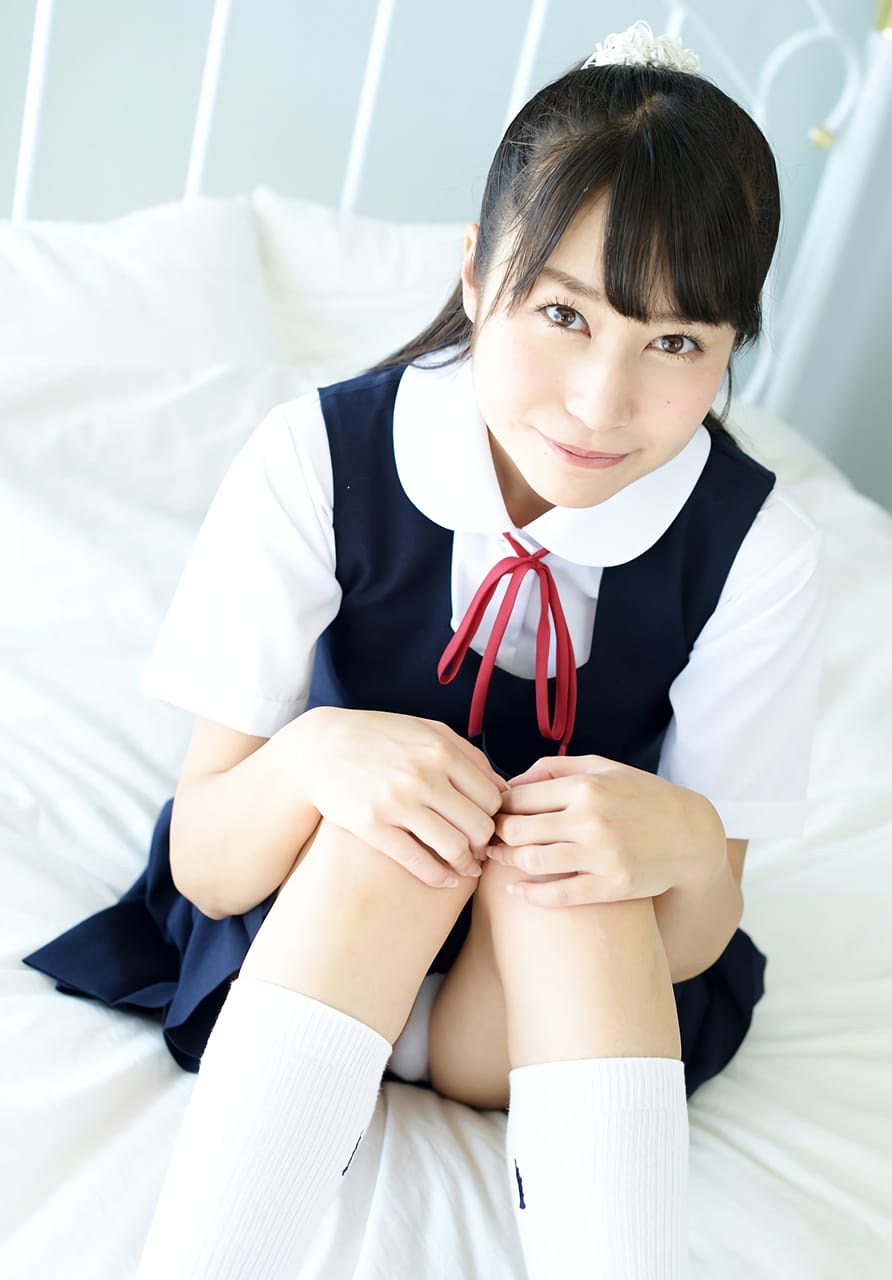 バスタブで手ブラで乳首を隠すツインテール女子