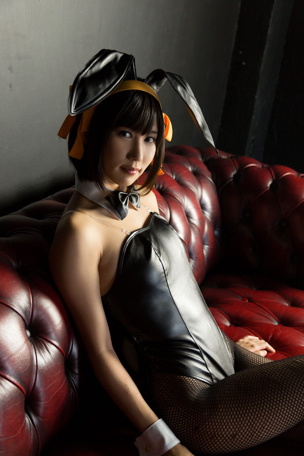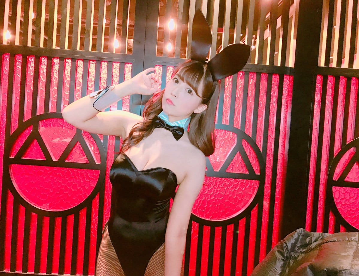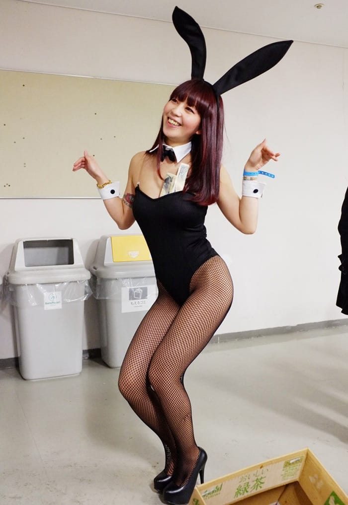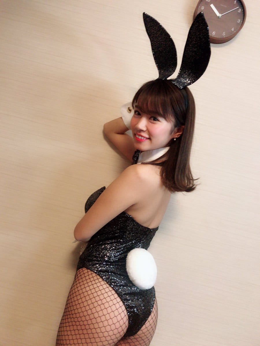 うさ耳にバニースーツ、網タイツが定番のセックスピール満点の衣装ですね。