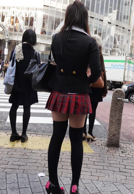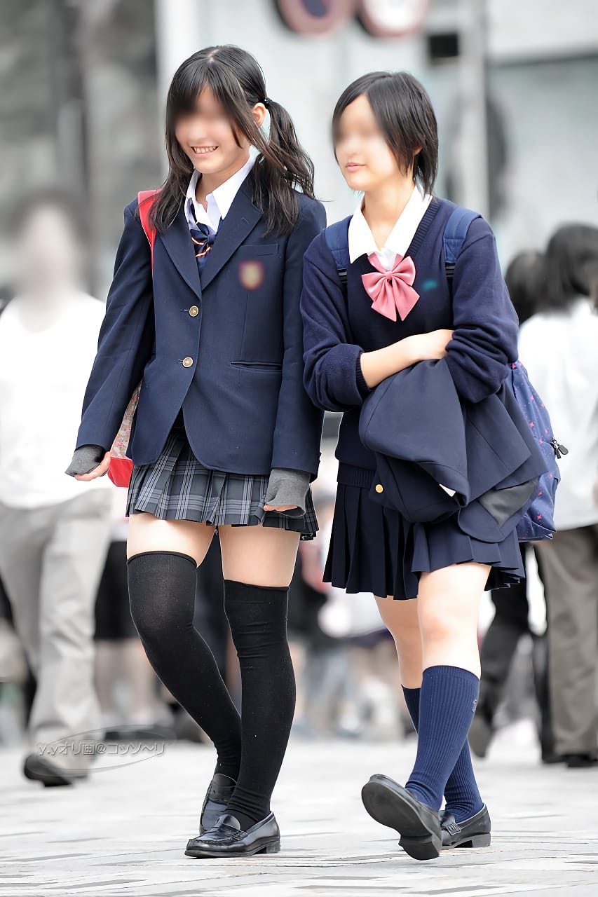 制服姿にニーソを履いた女子校生達が可愛いです。