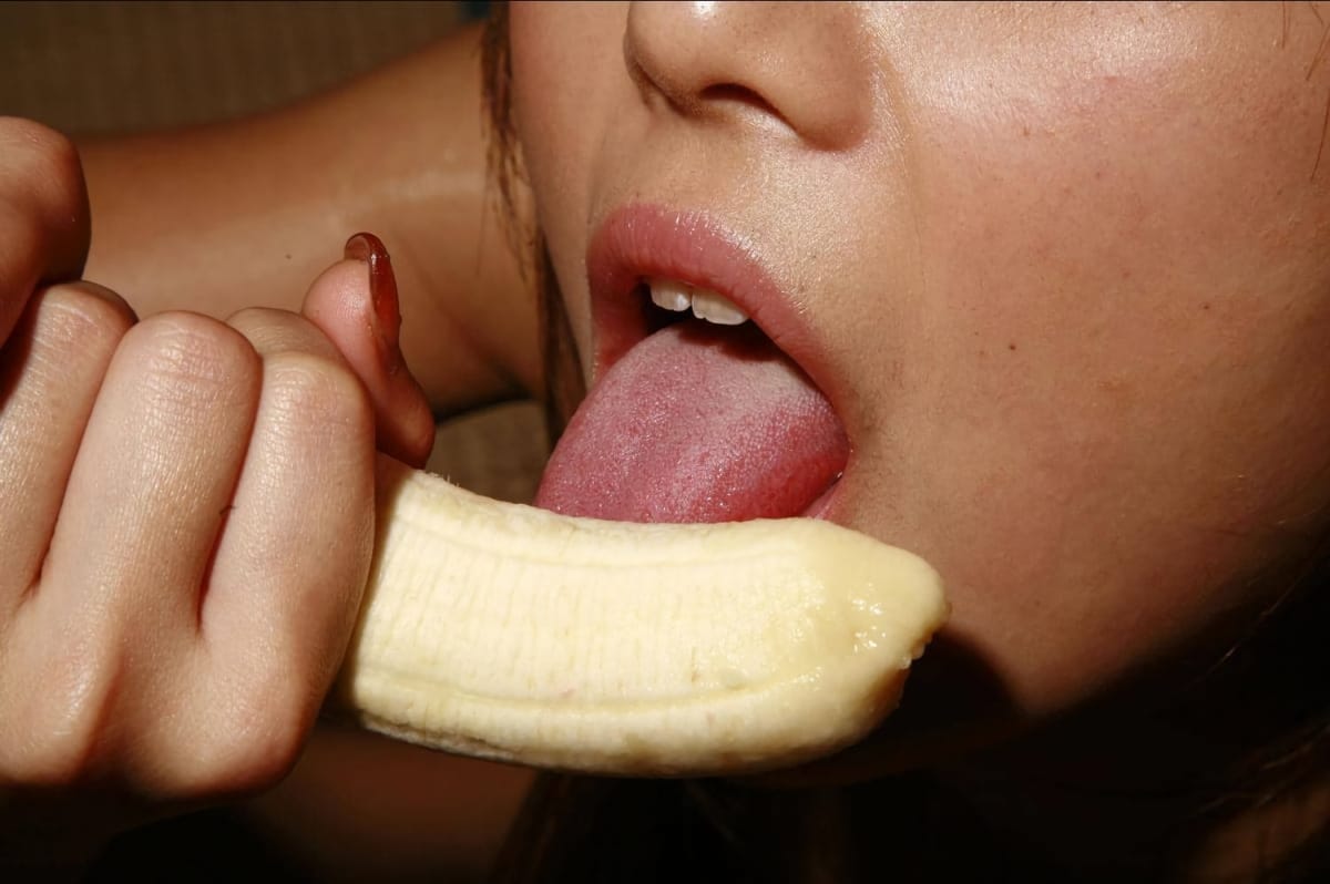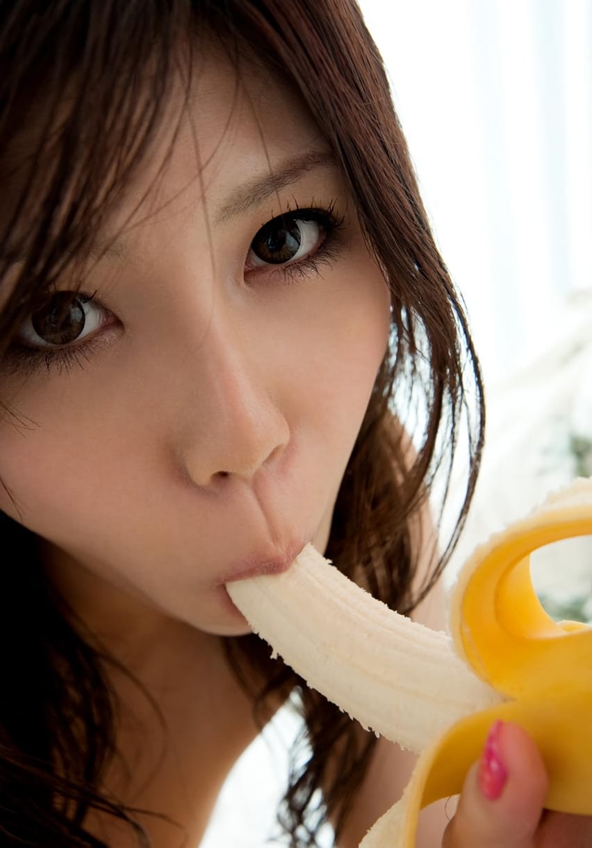 ディルドやバイブ、バナナにキュウリと様々な物を咥える疑似フェラ画像です。