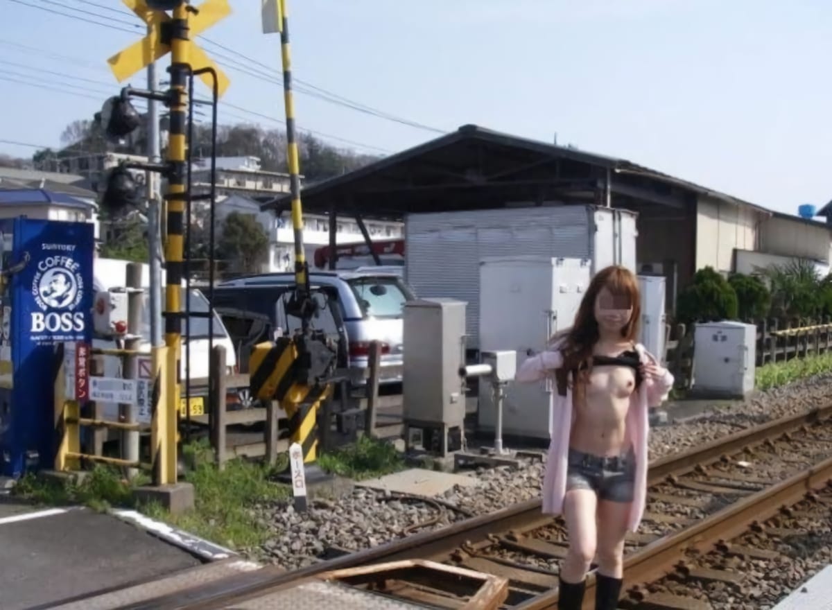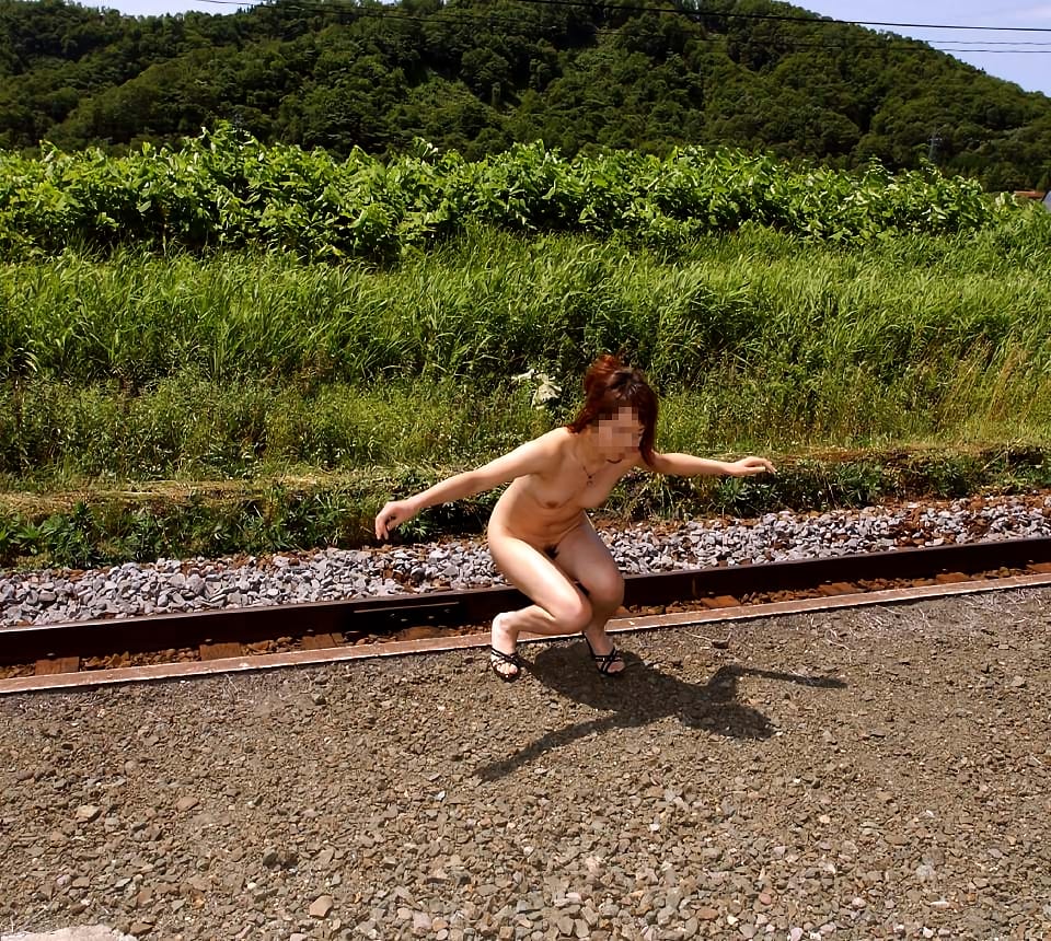 線路の上でヌードになるという必然的に野外露出画像になりますね。