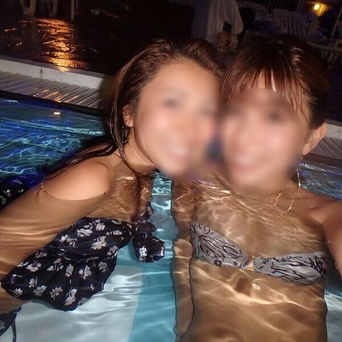 プールサイドで並んで写る二人組のパリピギャル
