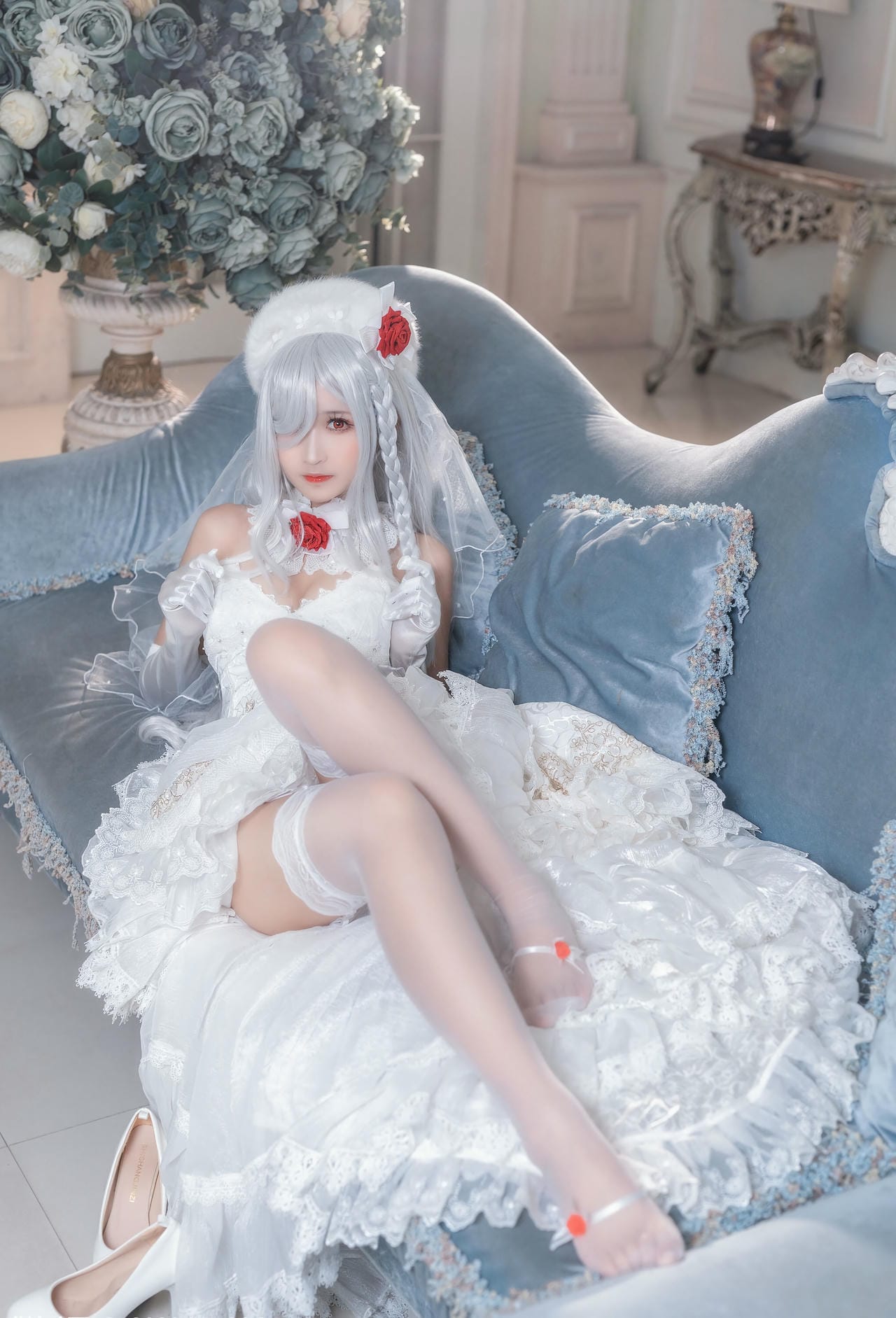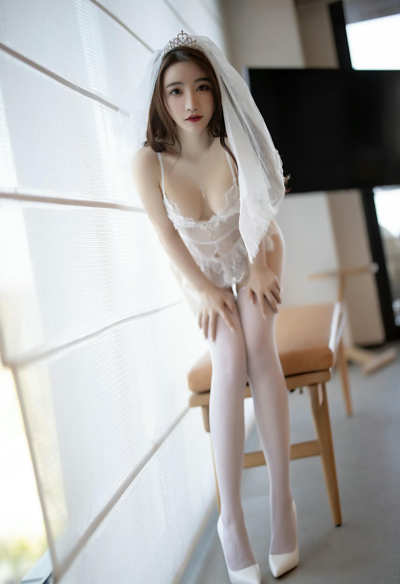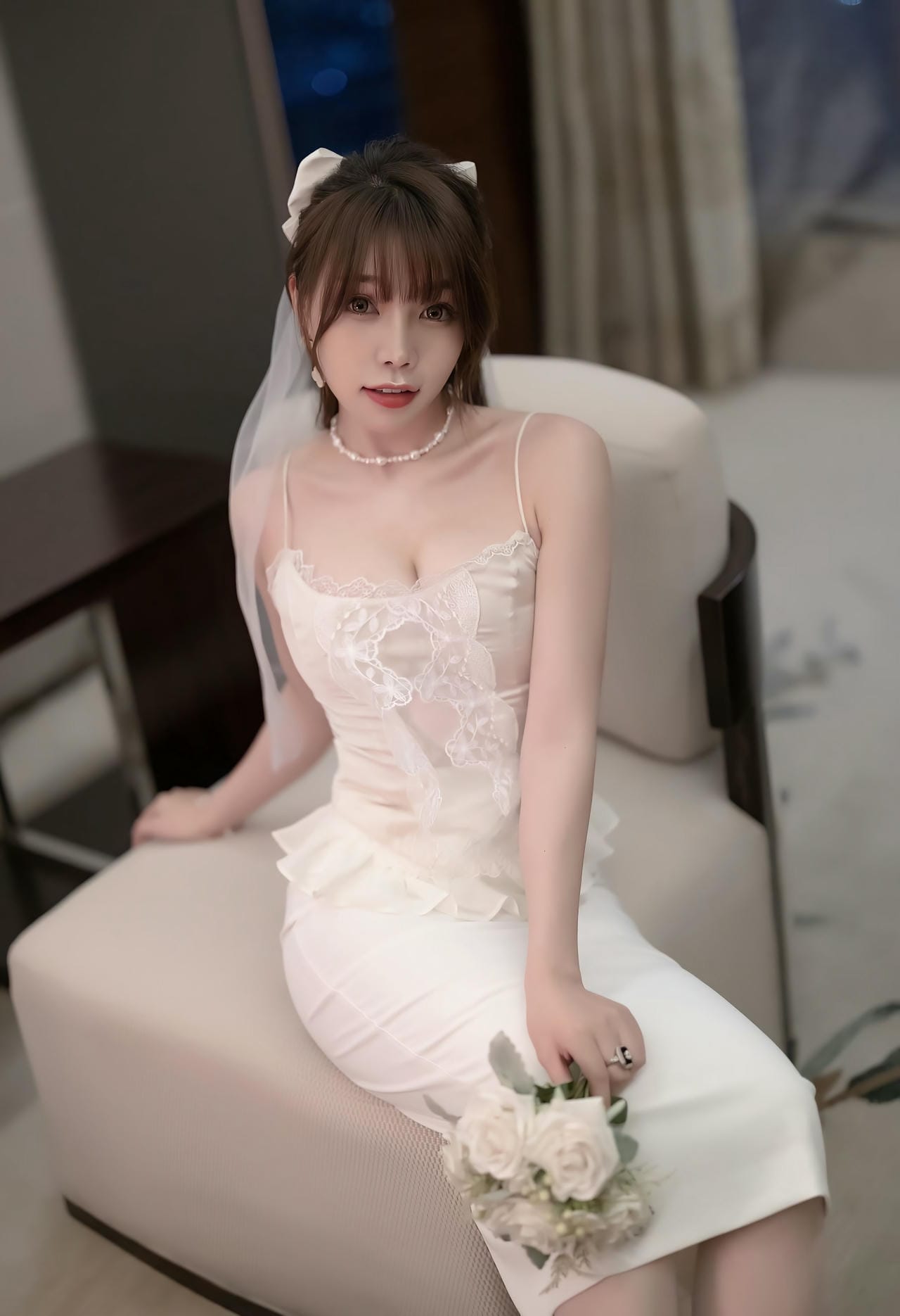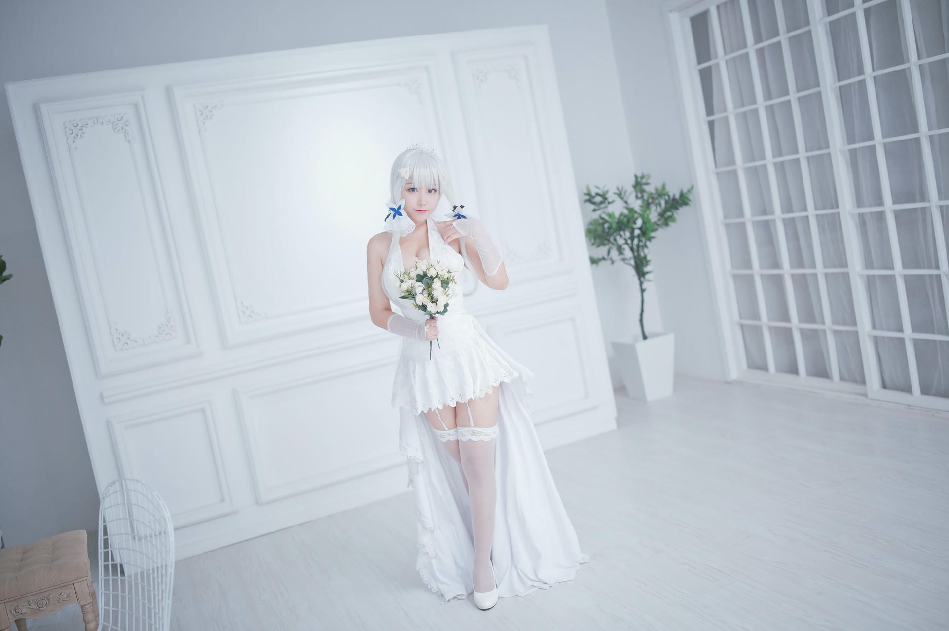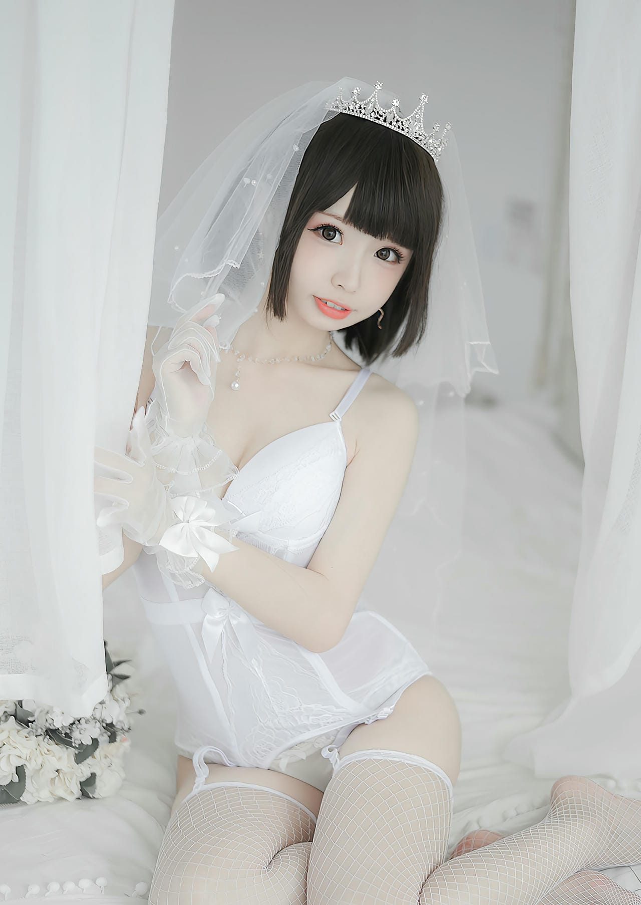 ウェディングドレス風の衣装が美しい三次元エロ画像50枚